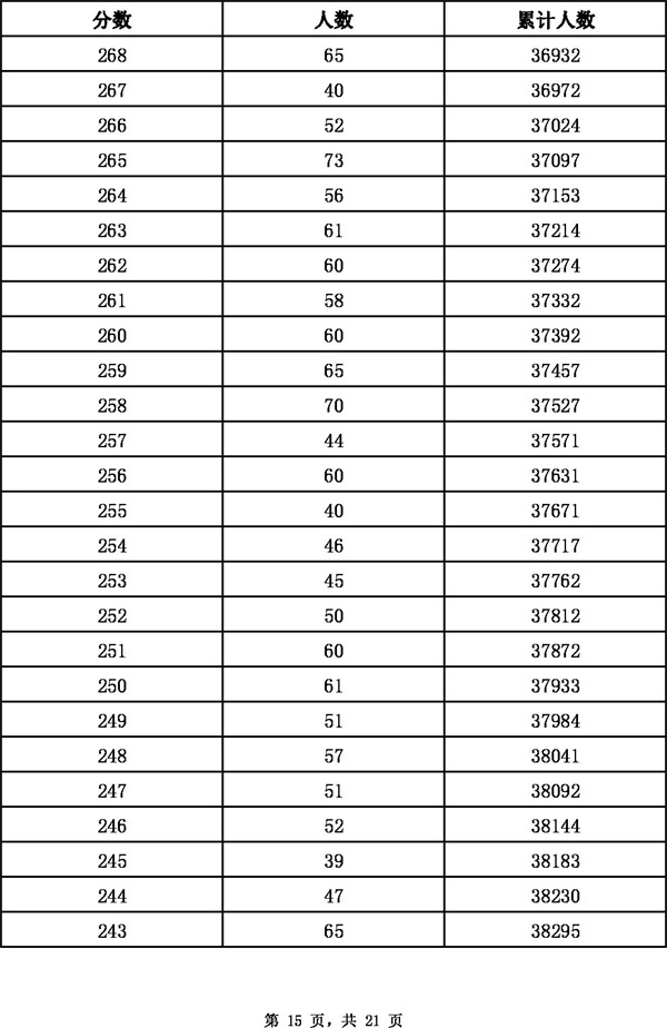 2023年張家口全市中考成績一分一檔表