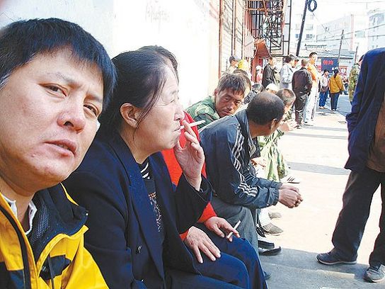 勞動力廣場上,人們天然地分出區(qū)域來。男人站在馬路的一邊,女人站另一邊,穿著皮鞋、開著小轎車的雇主就穿行在馬路中間,雇主喊一句“焊工、瓦工”,就有一群人圍上去,討價還價,報價低的搶了報價高的單,就會發(fā)生拳頭之爭。這是幾乎每天發(fā)生的事兒。